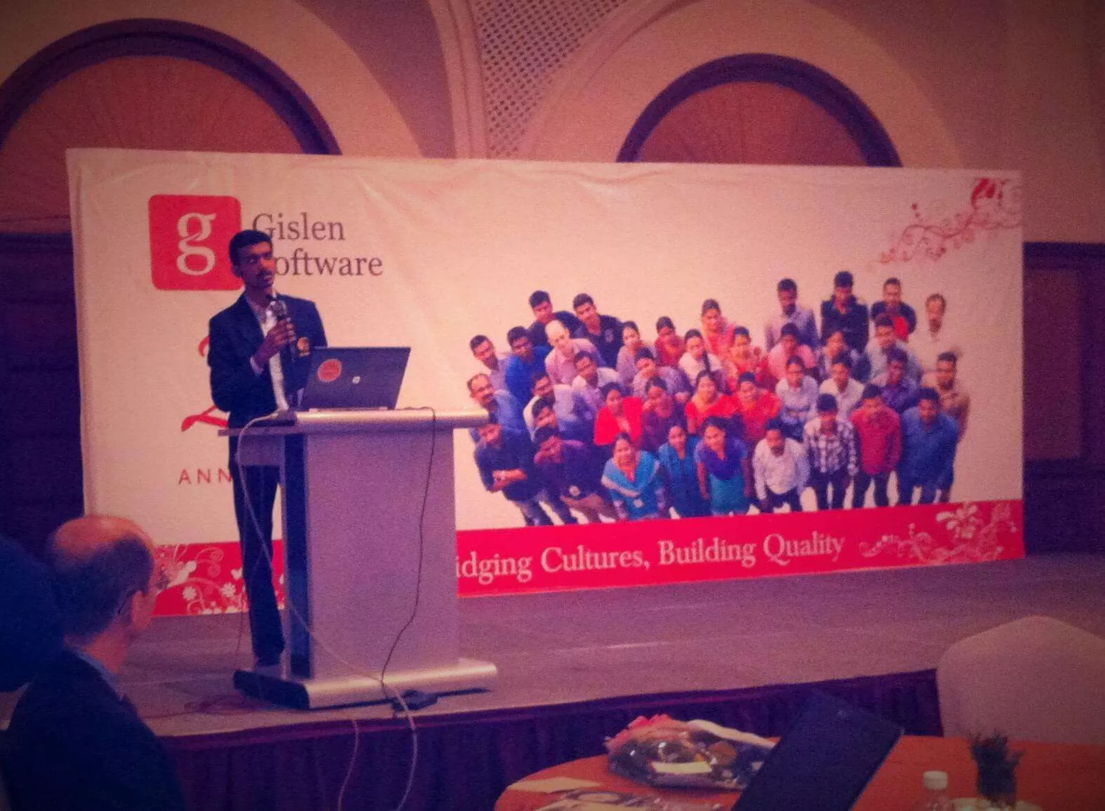 Firandet påbörjades med en 10 minuters presentation med 250 bilder från företagets historia. Den innehöll foton, skärmbilder, familjefoton, kundbesök mm. Efter detta följde korta anföranden av våra styrelsemedlemmar, ledningsgruppen, några anställda som börjat de senaste åren. Anförandena avbröts av kulturella framföranden av flickor från Little Lambs School som dansade traditionell Indisk dans och anställdas barn som sjöng ett par sånger. Hans Sollerman, VD hos e-man talade och både han och Gislen Software gav ekonomiska gåvor till Little Lambs School. Tillställningen avslutades med en indisk buffémiddag.